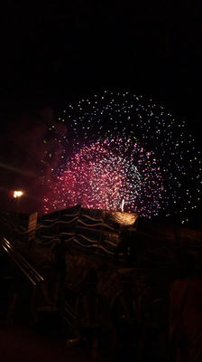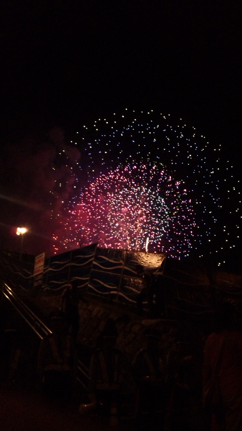 ところで先日淀川の花火に行ってきたのですが…昨日仕事で打ち上げ開始19:50に調度河川敷について「さぁ連れのいる所に行こう」と思った矢先,超満員で河川敷の中が封鎖されて行けませんでした(¥_¥)まさに踊る大捜査線の逆バージョンで「レインボーブリッジ」を封鎖されてしまいました!しょうがなくその辺の道路に座って見物しましたがそれでもやはり花火はキレイでした!!